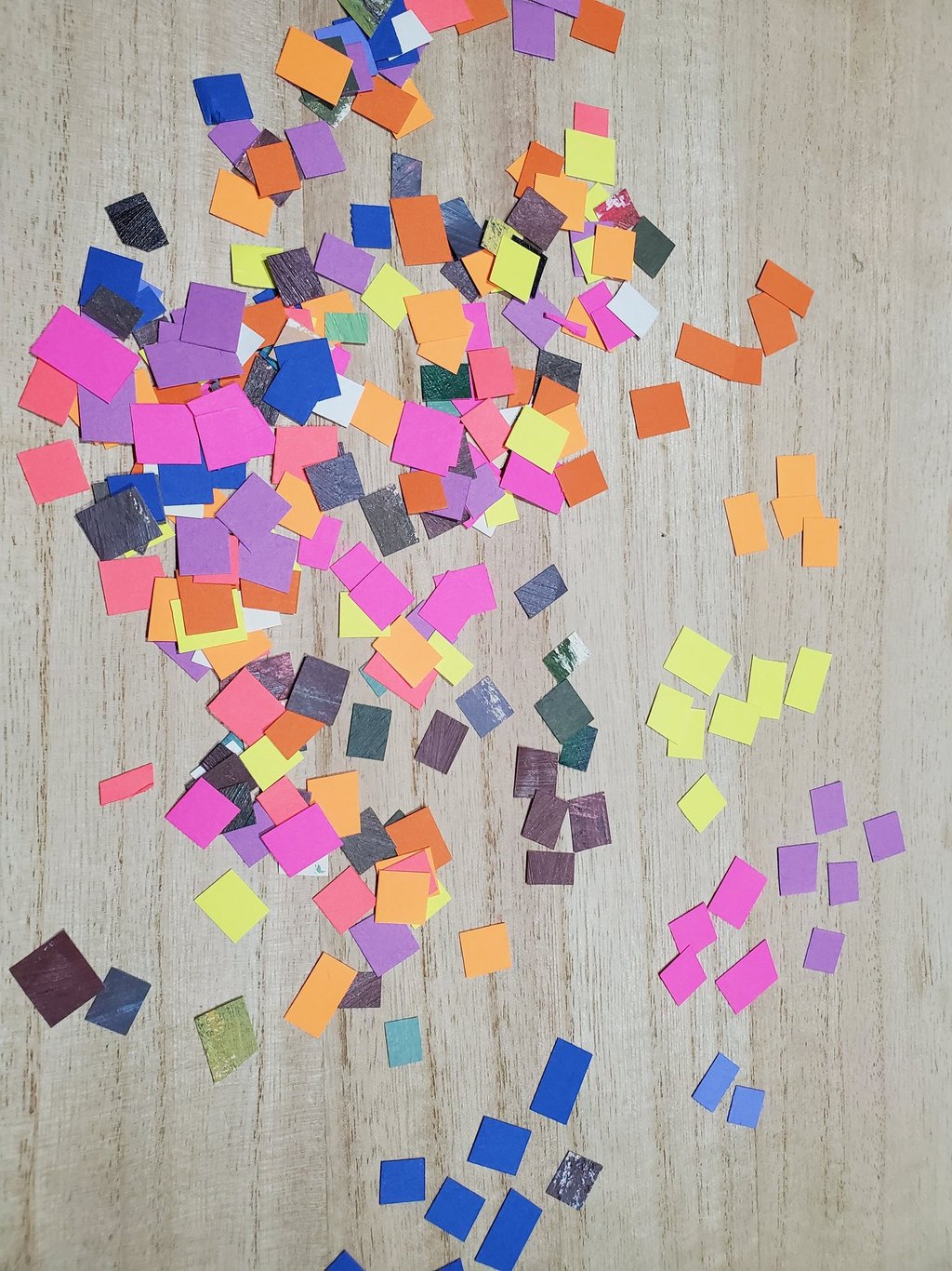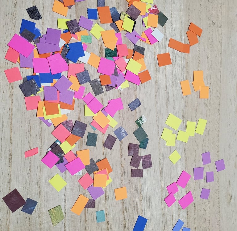 papers in many colors cut into small squares